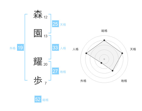 森園 耀歩さんの総格は52画の4点!