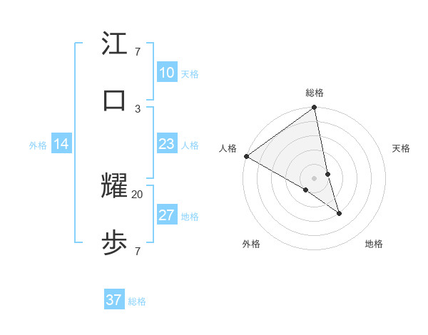 江口 耀歩さんを姓名の画数から五運を鑑定