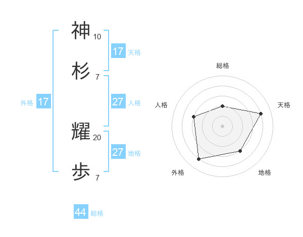 神杉 耀歩さんを姓名の画数から五運を鑑定