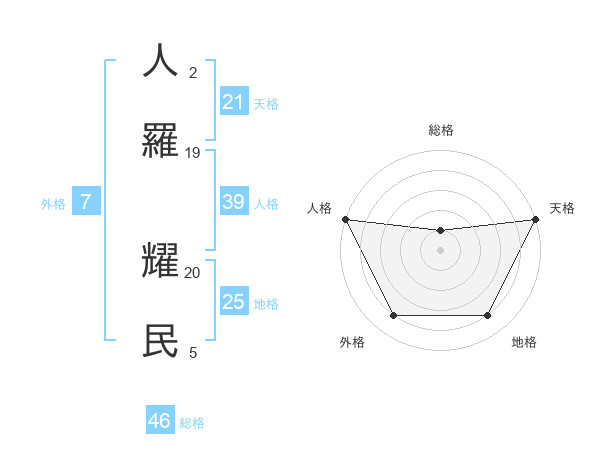 人羅 耀民さんを姓名の画数から五運を鑑定