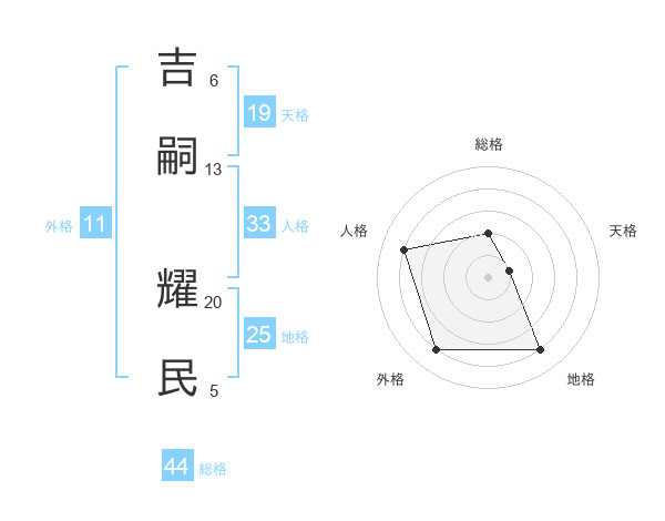 吉嗣 耀民さんを姓名の画数から五運を鑑定