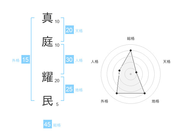真庭 耀民さんの総格は45画の4点!