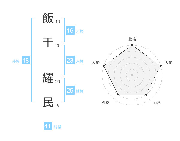 飯干 耀民さんの総格は41画の5点!