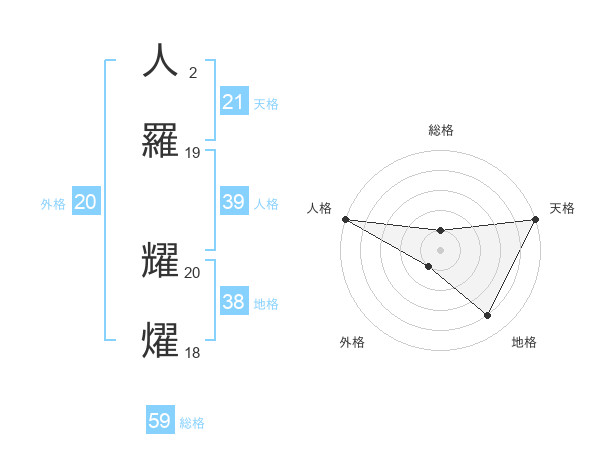 人羅 耀燿さんの総格は59画の1点!