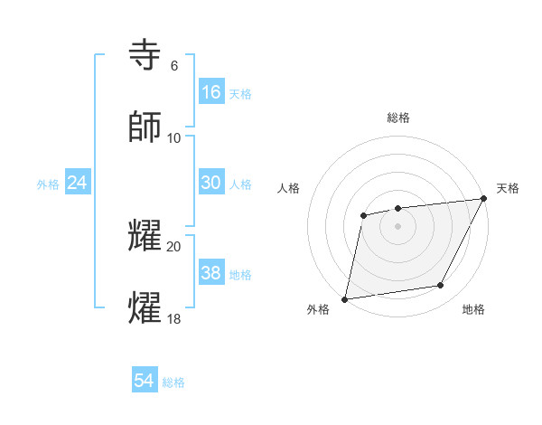 寺師 耀燿さんの総格は54画の1点!
