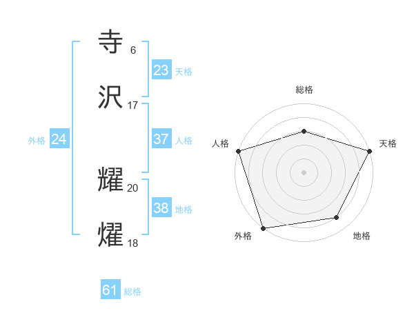 寺沢 耀燿さんの総格は61画の3点!
