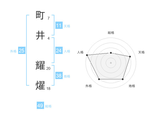 町井 耀燿さんを姓名の画数から五運を鑑定