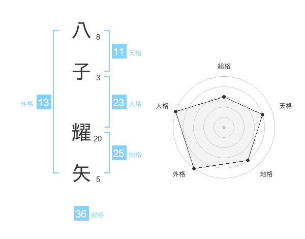 八子 耀矢さんの外格は13画の5点!
