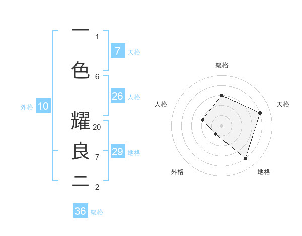 一色 耀良ニさんの地格は29画の4点!