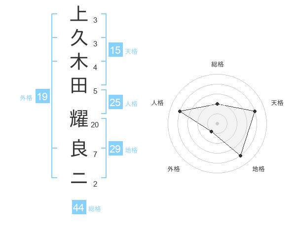 上久木田 耀良ニさんを姓名の画数から五運を鑑定