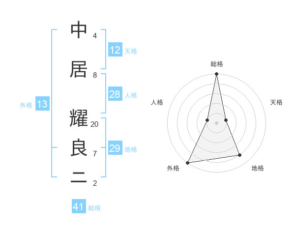 中居 耀良ニさんを姓名の画数から五運を鑑定