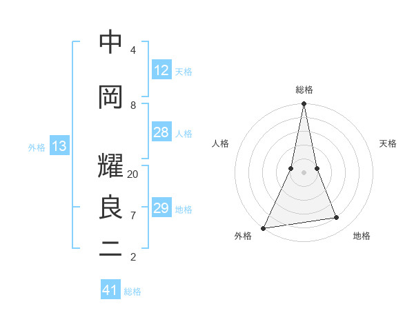 中岡 耀良ニさんを姓名の画数から五運を鑑定