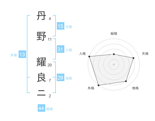 丹野 耀良ニさんの天格は15画の4点!