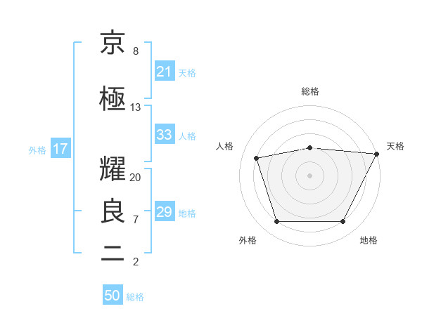 京極 耀良ニさんを姓名の画数から五運を鑑定