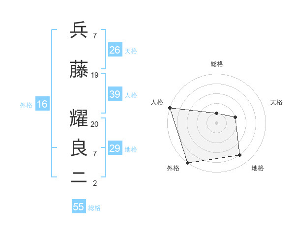 兵藤 耀良ニさんの総格は55画の1点!