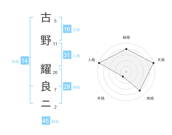 古野 耀良ニさんの総格は45画の4点!