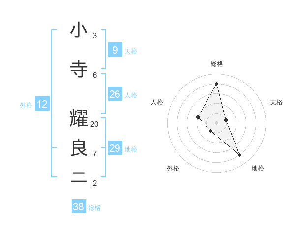 小寺 耀良ニさんを姓名の画数から五運を鑑定