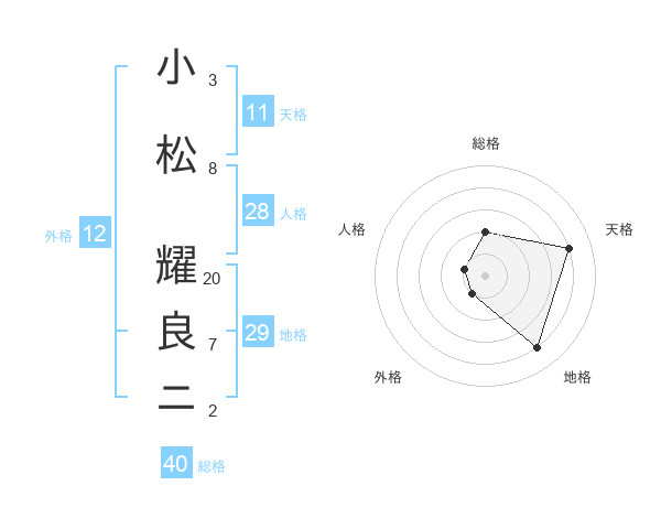 小松 耀良ニさんを姓名の画数から五運を鑑定