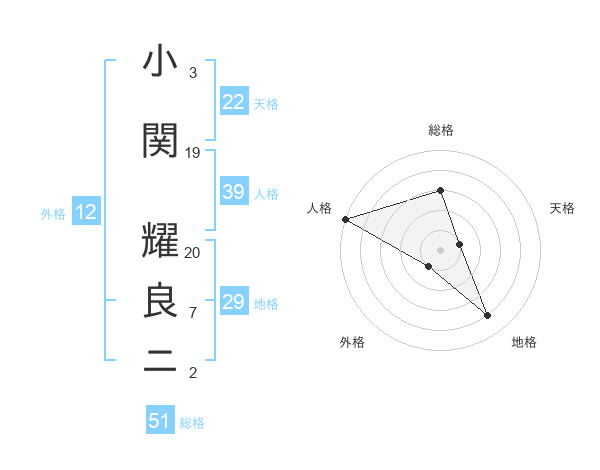 小関 耀良ニさんを姓名の画数から五運を鑑定
