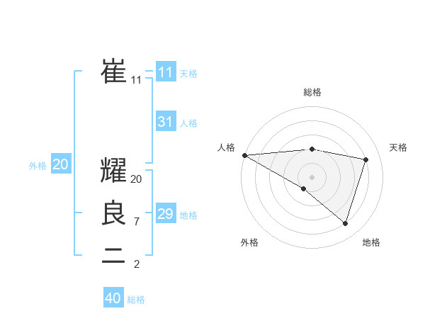 崔 耀良ニさんを姓名の画数から五運を鑑定