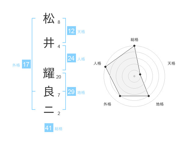 松井 耀良ニさんを姓名の画数から五運を鑑定