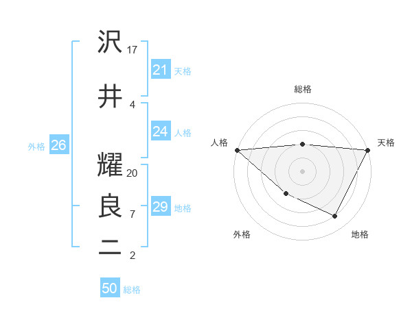 沢井 耀良ニさんを姓名の画数から五運を鑑定