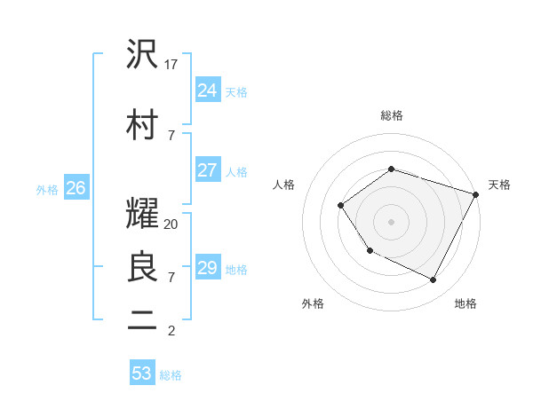 沢村 耀良ニさんの総格は53画の3点!