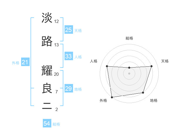 淡路 耀良ニさんを姓名の画数から五運を鑑定