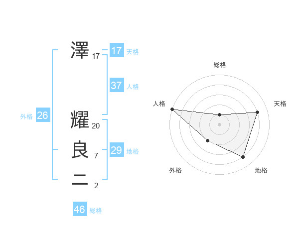 澤 耀良ニさんを姓名の画数から五運を鑑定