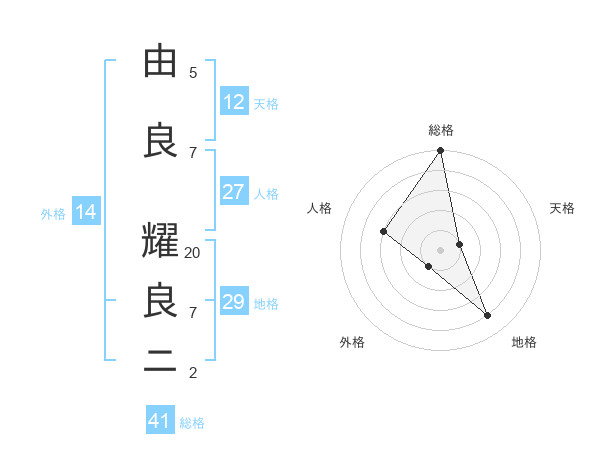 由良 耀良ニさんの総格は41画の5点