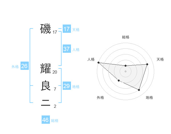 磯 耀良ニさんを姓名の画数から五運を鑑定