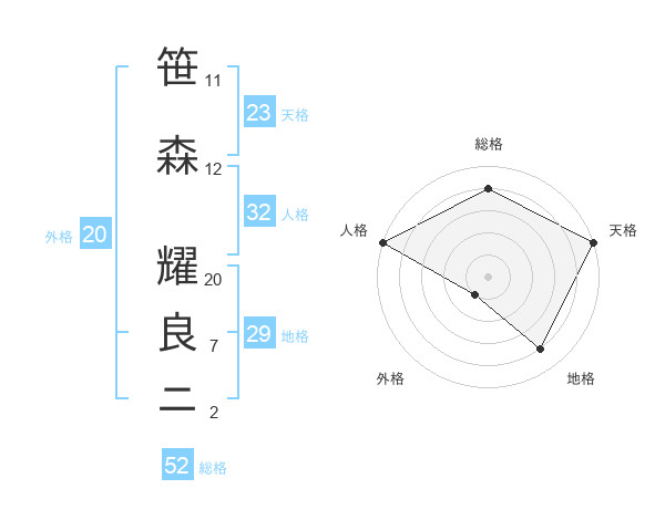 笹森 耀良ニさんの総格は52画の4点