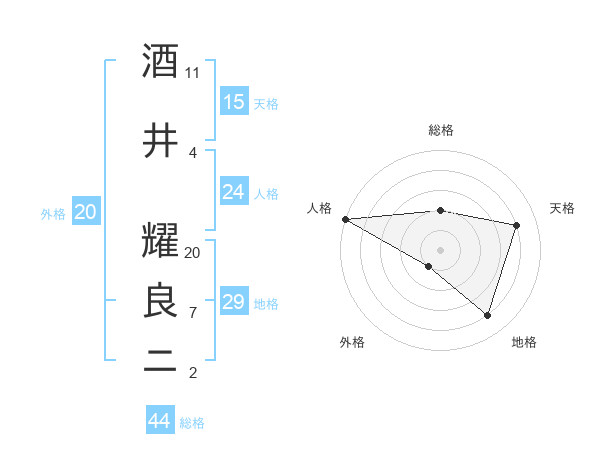 酒井 耀良ニさんの総格は44画の2点!