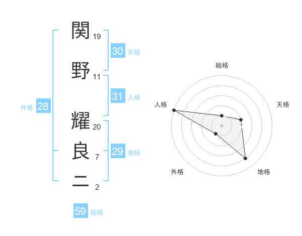関野 耀良ニさんを姓名の画数から五運を鑑定