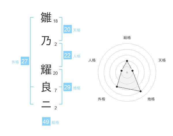 雛乃 耀良ニさんの総格は49画の2点!