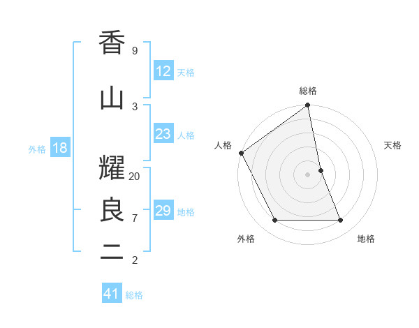 香山 耀良ニさんを姓名の画数から五運を鑑定