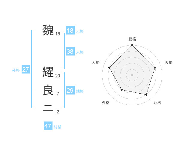 魏 耀良ニさんの総格は47画の5点!