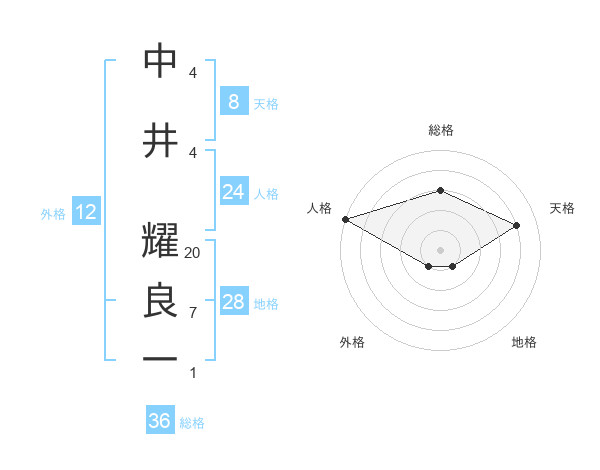 中井 耀良一さんを姓名の画数から五運を鑑定