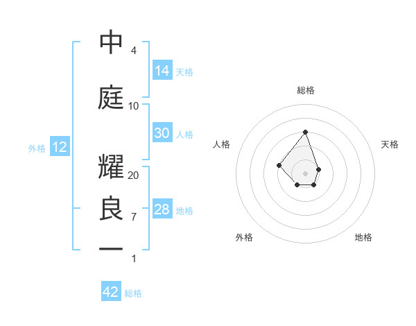 中庭 耀良一さんの総格は42画の3点!