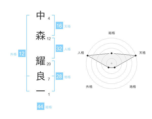 中森 耀良一さんを姓名の画数から五運を鑑定