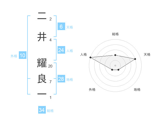 二井 耀良一さんの総格は34画の2点!