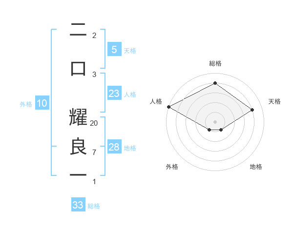 二口 耀良一さんを姓名の画数から五運を鑑定