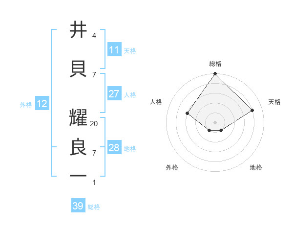 井貝 耀良一さんの総格は39画の5点!