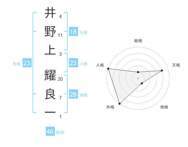 井野上 耀良一さんを姓名の画数から五運を鑑定