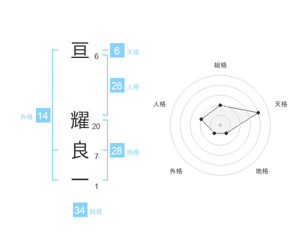 亘 耀良一さんの天格は6画の4点!