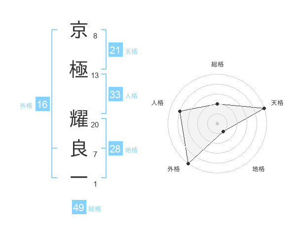 京極 耀良一さんを姓名の画数から五運を鑑定