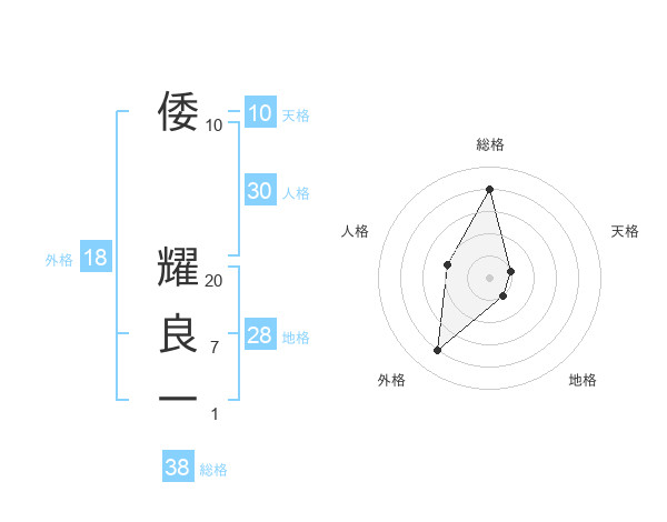 倭 耀良一さんの総格は38画の4点!