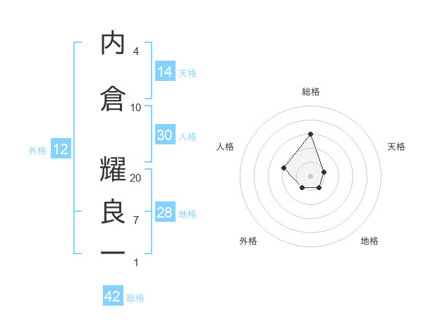 内倉 耀良一さんを姓名の画数から五運を鑑定