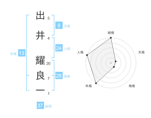 出井 耀良一さんを姓名の画数から五運を鑑定