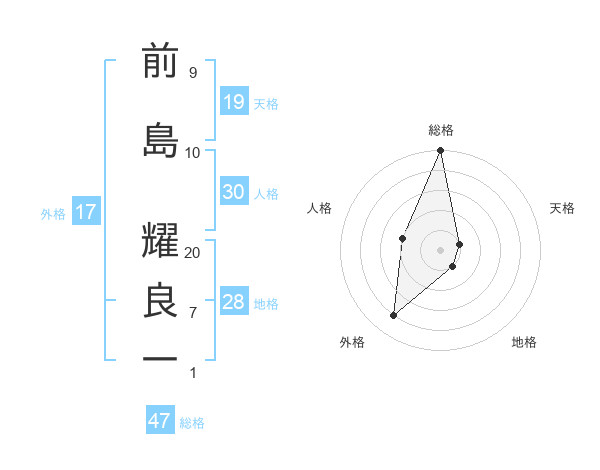 前島 耀良一さんの総格は47画の5点!
